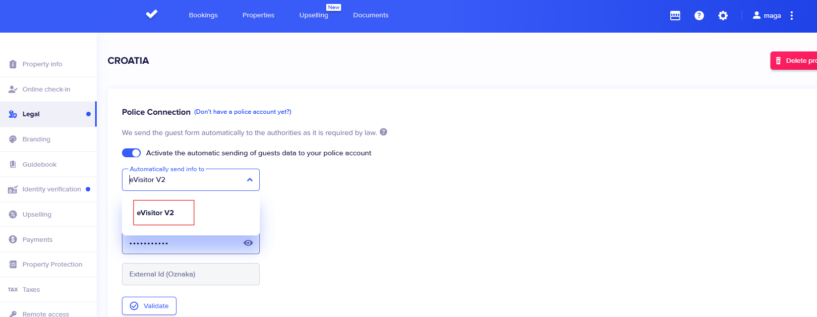 In this article we explain how to connect connect eVisitor Police Portal (required in Croatia) to Chekin in your Chekin account in order to send your guest stated data to the authorities.